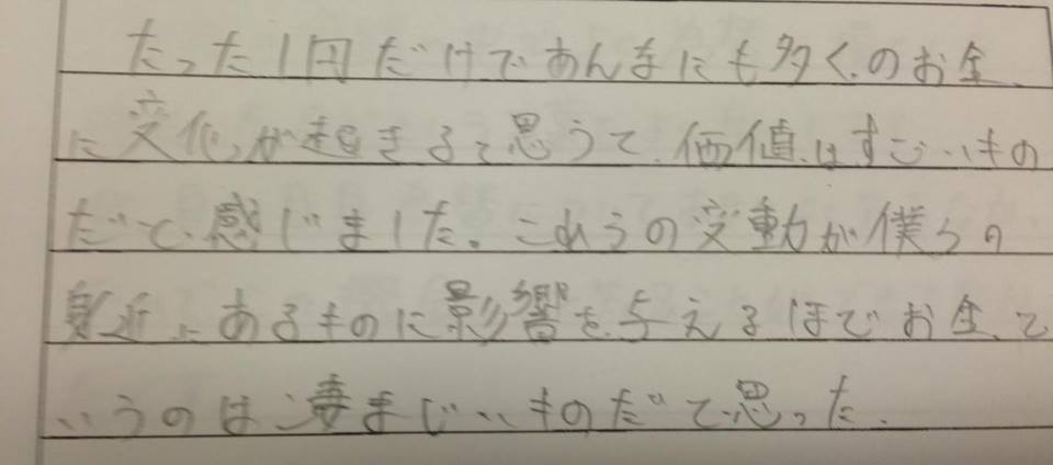 テーマは「為替」。円安・円高をほとんどの生徒はすでに理解をしていたので、実際の企業の為替差損やビッグマック指数などについて伝えました。生徒は1円の影響にびっくり!!!だったようです。